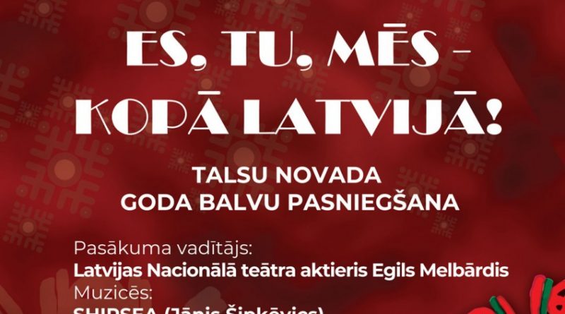 Lasīt vairāk17.novembrī plkst.19:00 Talsu Tautas namā aicinām uz sirnīgu atkalsatikšanos un kopā būšanu Latvijas Republikas proklamēšanas 104. gadadienai veltītā svinīgā pasākumā