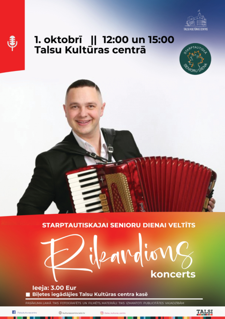 1.oktobrī plkst.12:00 un15:00 Starptautiskajai senioru dienai veltīts “Rikardiona koncerts”. Ieeja 3 EUR