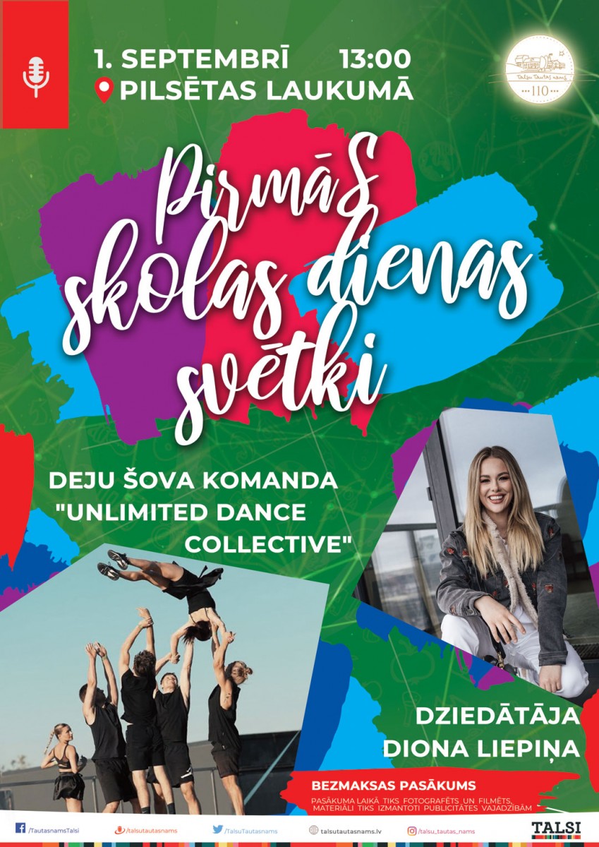 Pirmo skolas dienu svinēsim kopā ar dziedātāju Dionu Liepiņu un deju šova komandu “Unlimited Dance Collective”