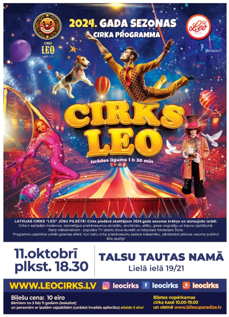 11. oktobrī plkst. 18:30 viesosies LATVIJAS CIRKS “LEO”