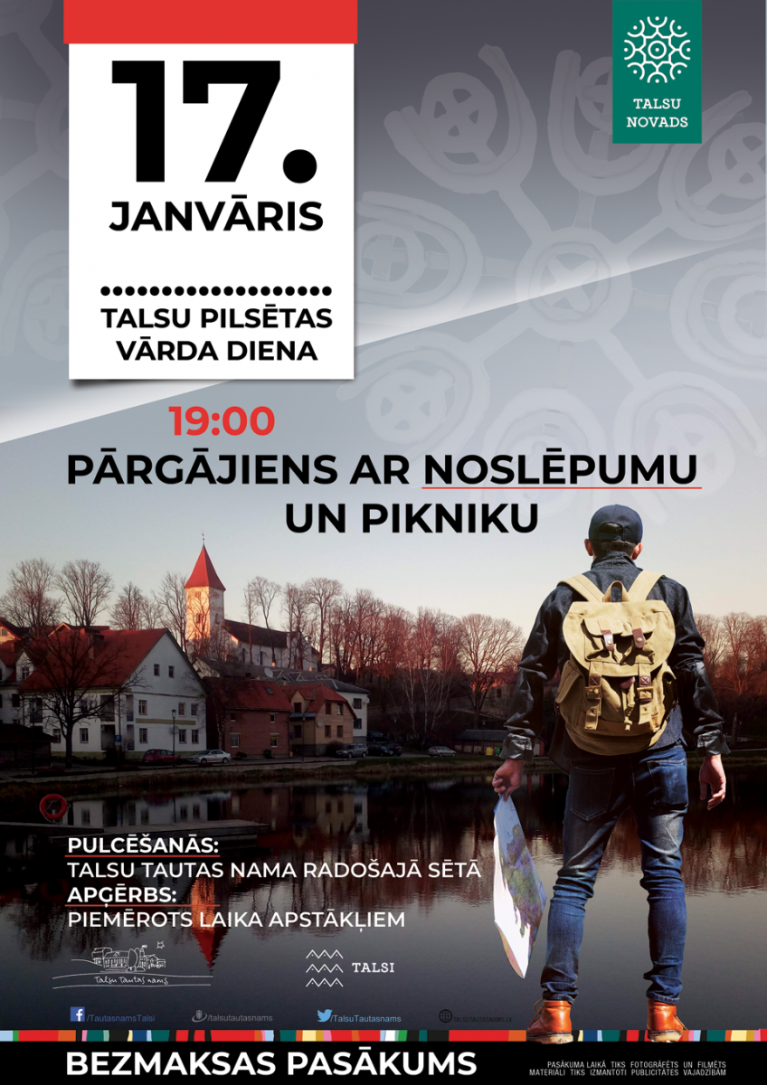 17.janvārī Talsu pilsētas vārda diena plkst.19.00 pārgājiens ar noslēpumu un pikniku