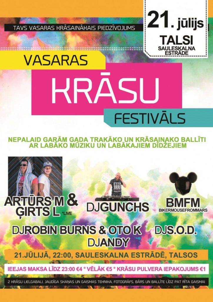 21.jūlijā plkst.22:00 pasākums “Vasaras krāsu festivāls” Sauleskalna estrādē