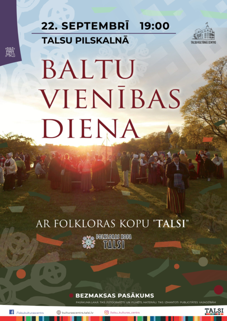 2025. gada 22. septembrī, pieminot Baltu vienības dienu, pievienosimies Talsu pilskalnā, plkst. 19.00 iededzot ugunskuru. Uguns tiks iedegta kalnu virsotnēs, uzkalnos vai citās vietās, kas saistītas ar baltu (aistu) vēsturi. Lai uguns gaisma vieno baltu garīgo dzimteni.