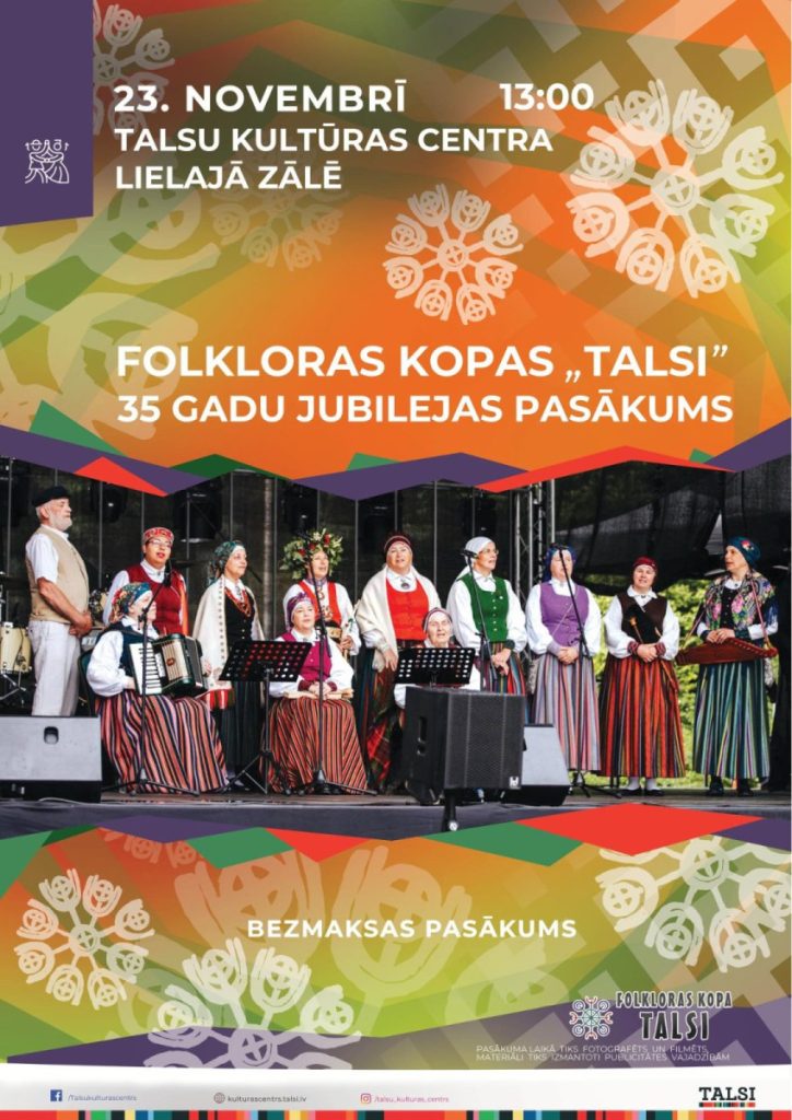 Talsu Kultūras centra folkloras kopai “Talsi”– 35, 23.novembrī, plkst.13:00!