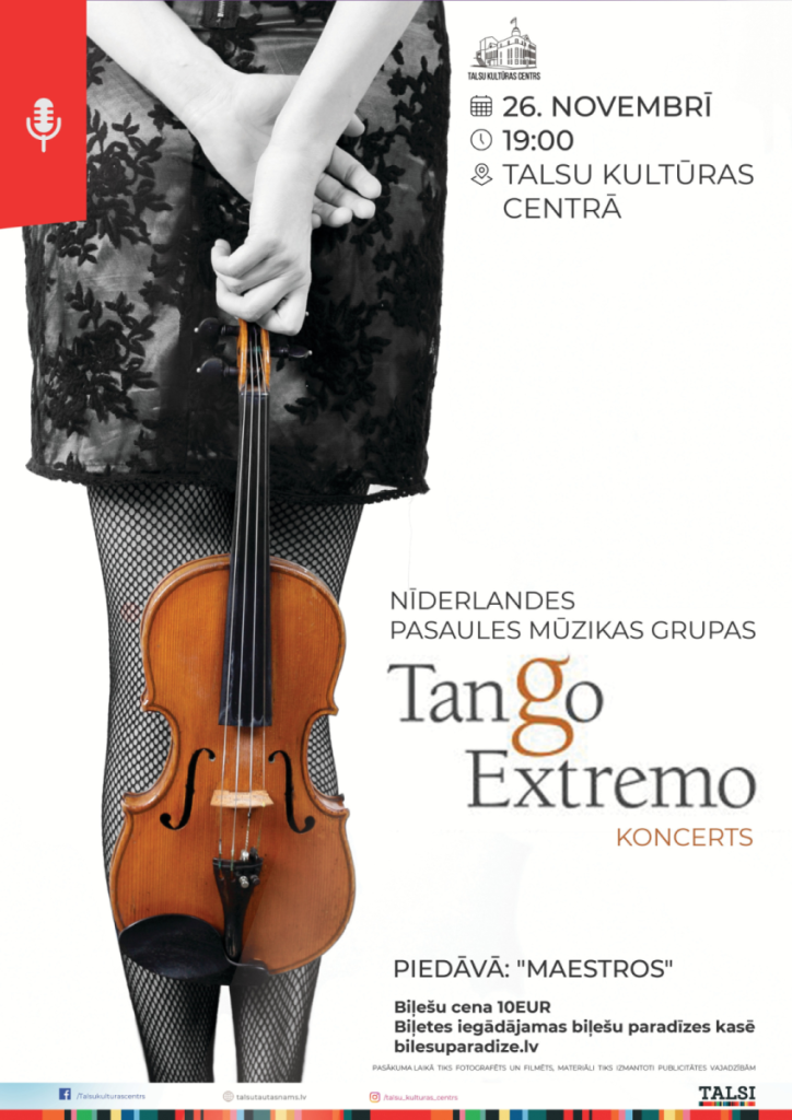 26.novembrī, 19:00 Tango Extremo koncertprogramma no Nīderlandes, ieeja 10.00 EUR