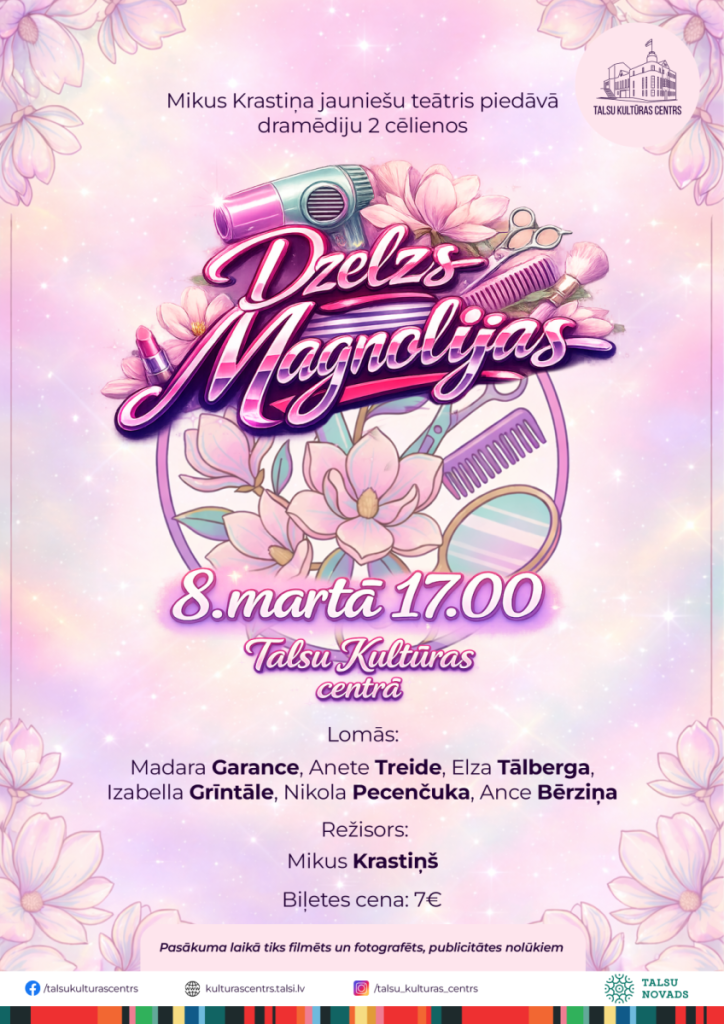 8.martā Mikus Krastiņa jauniešu teātris piedāvā dramēdiju divos cēlienos “Dzelzs Magnolijas”!