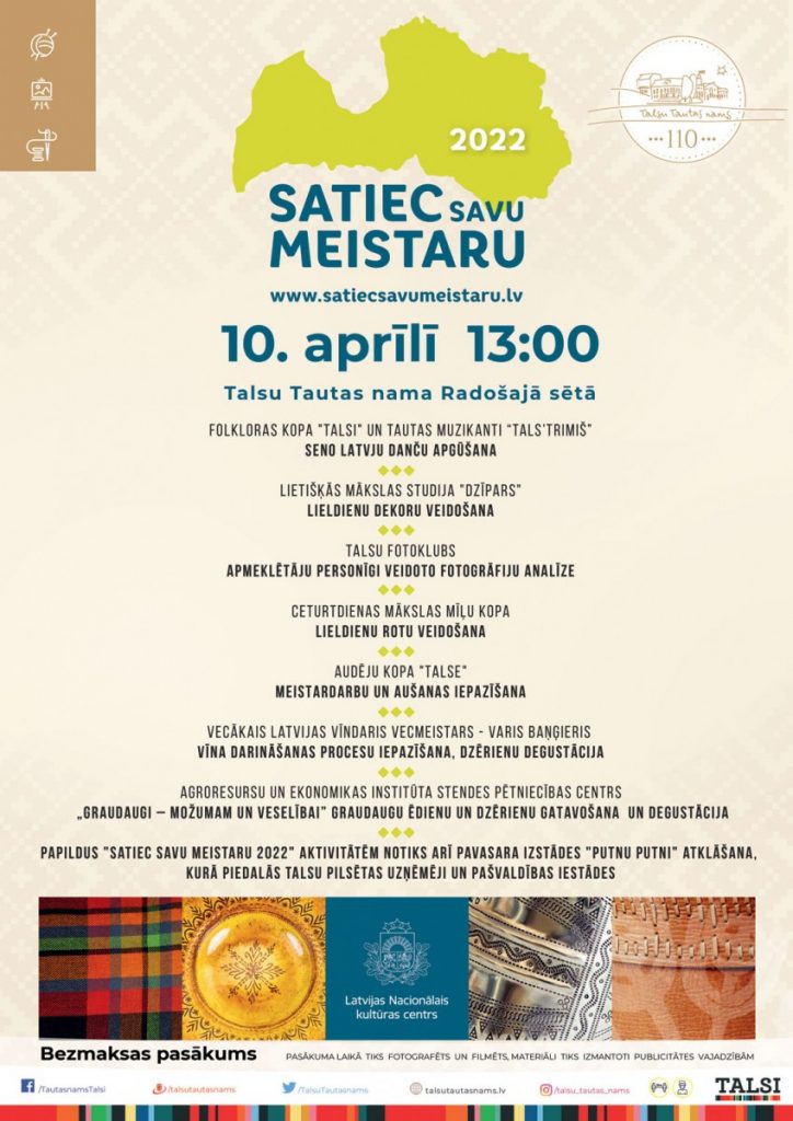 10. aprīlī plkst. 13:00 Radošajā sētā “SATIEC SAVU MEISTARU 2022”