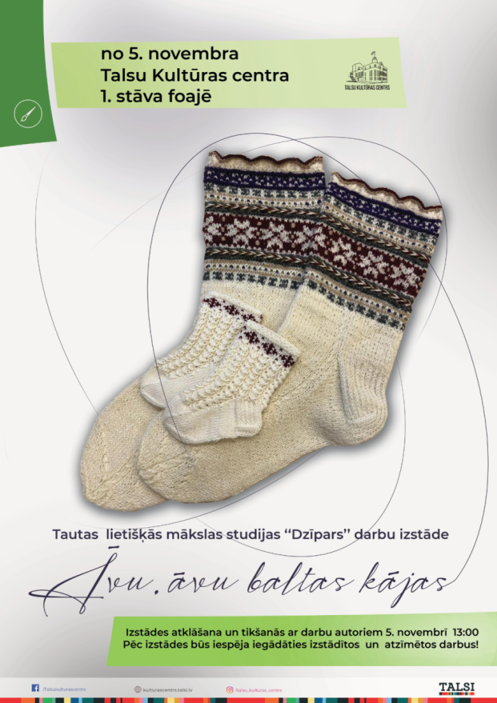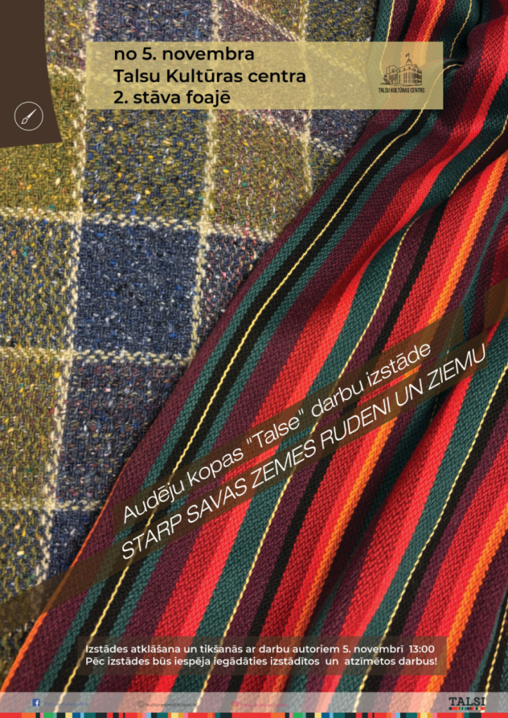 No 5.novembra aicinām uz divām Talsu Kultūras centra kolektīvu-TLMS “Dzīpars” un Audēju kopa “Talse” izstādēm